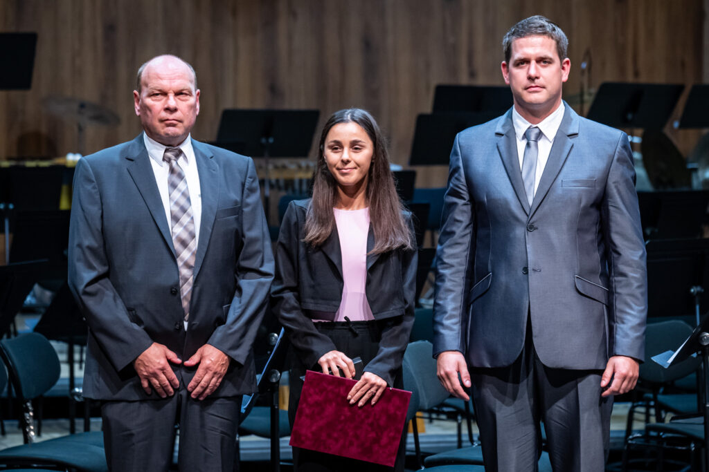 A Dr. Aradi Csilla-díjat dr. Szabó Bernadett frissdiplomás jogász vehette át. Az évfolyamelsők elismerését, valamint a végzettek eskütételét követően a jubileumi tanévnyitó a Győr Symphonic Band hangversenyével zárult.