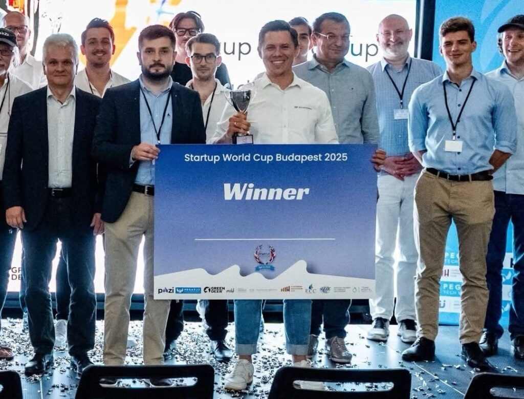 Az EV.analytica a startup-világbajnokság budapesti fordulóját nyerte meg, a céget Papp Zoltán (középen) képviselte