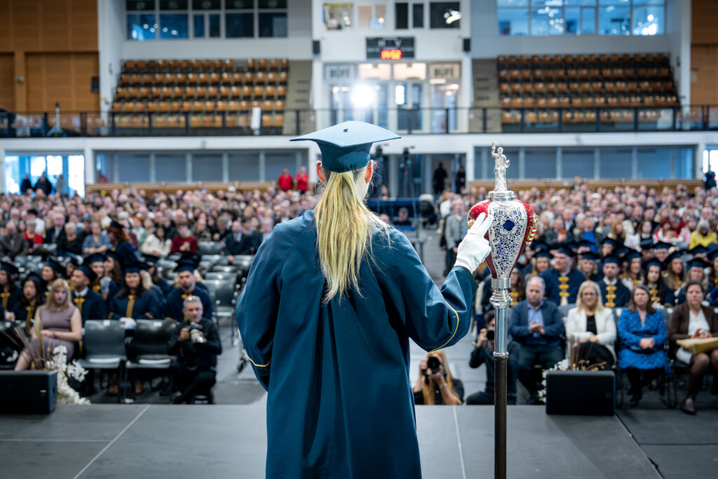 Az Apáczai-kar végzett hallgatóit dr. Pongrácz Attila dékán köszöntötte, aki beszédében a hivatás iránti elkötelezettség és a társadalmi felelősségvállalás jelentőségét emelte ki. Mint fogalmazott, jelenleg kilenc alap- és öt mesterképzés, valamint több mint húsz szakirányú továbbképzés szerepel. „Folyamatosan fejlesztjük azokat a rövid ciklusú képzéseinket is, amelyek a digitalizáció és a fenntarthatóság szempontjait is figyelembe véve kínálnak intézményi és vállalati szakemberek számára tréningmódszertant alkalmazó fejlődési lehetőségeket” – tette hozzá. A karral kapcsolatban az értékátadás mellett az innovációt hangsúlyozta, megemlítve a LEGO élménypedagógiai szaktantermet és az elmúlt tanévben kialakított STEM tantermet, amelyekben a 21. századi digitális világ oktatási lehetőségeit vizsgálják.
