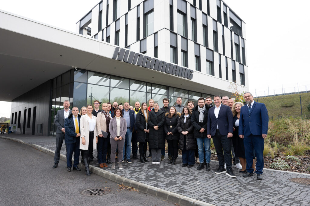 A szakmai program résztvevőinek csoportképe a Hungaroring főépületénél.