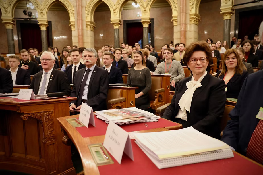 A historic event took place in the Upper House Chamber of the Parliament on 21 November: for the first time, the Hungarian–German Youth Parliament convened, creating a new forum for young people from both countries. The event was organised by the Hungarian–German Youth Association, whose president, Dr Erzsébet Knáb – founder and board member of the Széchenyi István University Foundation, which maintains the University – highlighted in her opening speech: “The challenges of the modern age do not allow nations to seek their future in isolation, for themselves and by themselves. Peace, mutual understanding and cooperation are not self-evident inheritances, but values that every generation must reinforce again and again. You, the first delegates of the Hungarian–German Youth Parliament, are undertaking this task: you build relationships, you build bridges, you shape the future. You do so knowing that not every road is smooth, and at times history tests the friendship of our nations — yet the shared direction and the shared goal must never be lost from sight.” She noted that Hungarian–German relations are built on centuries-old traditions, and it is the task of young people to bring new content to this dialogue. She emphasised that the youth parliament marks the beginning of a mission centred on the future, Europe, and the shared responsibility of the two nations.