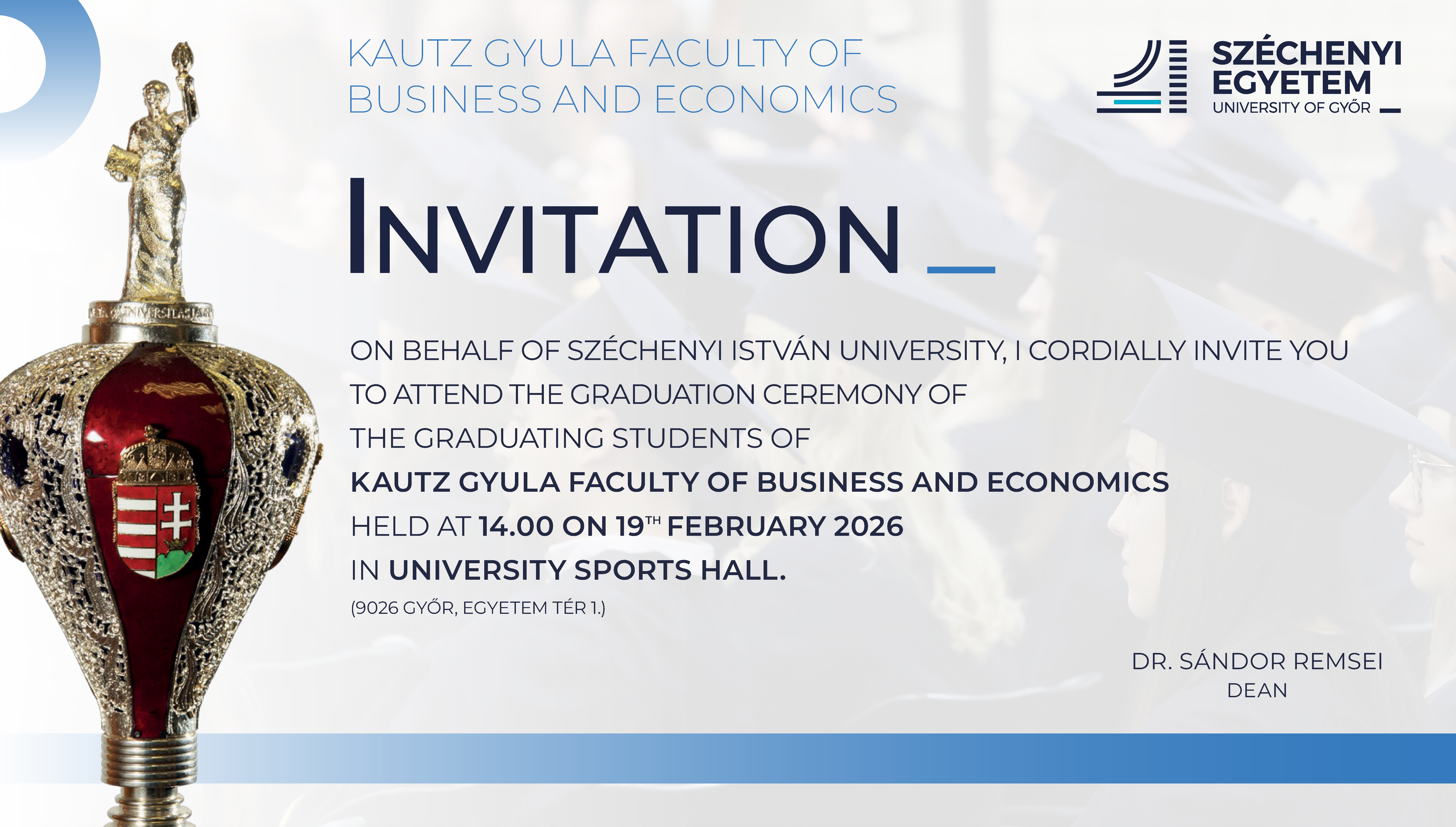 Kautz Gyula Faculty of Business and Economics 19 February, 2026 Thursday 14:00 9026 Győr, Egyetem tér 1. University Sports Hall Download Download