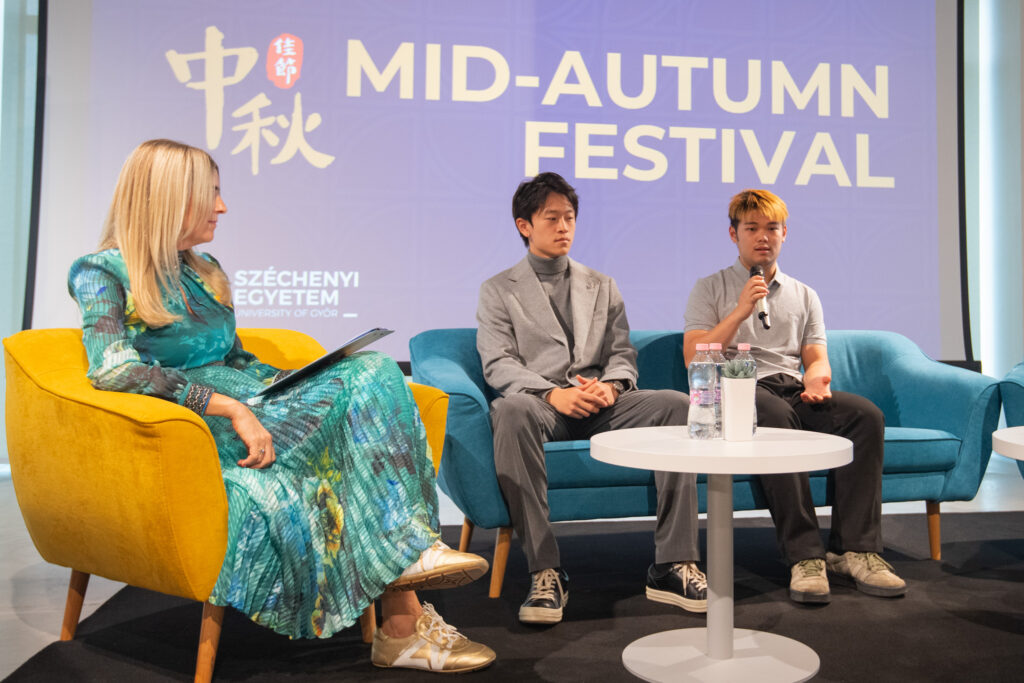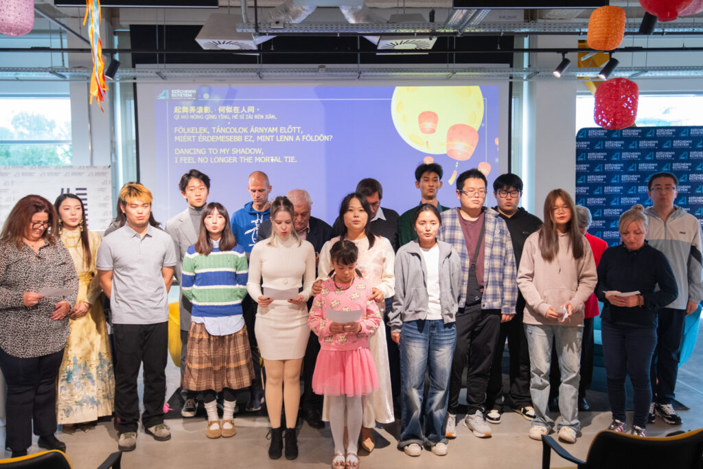 The most uplifting moment of the event came when participants of the University’s Chinese language courses — from young children to adults and senior learners — recited a poem related to the Mid-Autumn Festival together with the Chinese students of the University. Additionally, attendees learned about the festival’s origins and customs from Shen Zhi, International Project Officer at the University’s Centre for Languages and Culture, and Zhao Lijun, a Chinese guest lecturer. They also received a brief insight into learning Chinese from Réka Orosz-Barczi, Director of the University’s International Directorate, and heard a roundtable discussion moderated by Natasha Bailey-Borbély, Head of the Centre for Languages and Culture, where Chinese students shared their experiences of life in Győr.