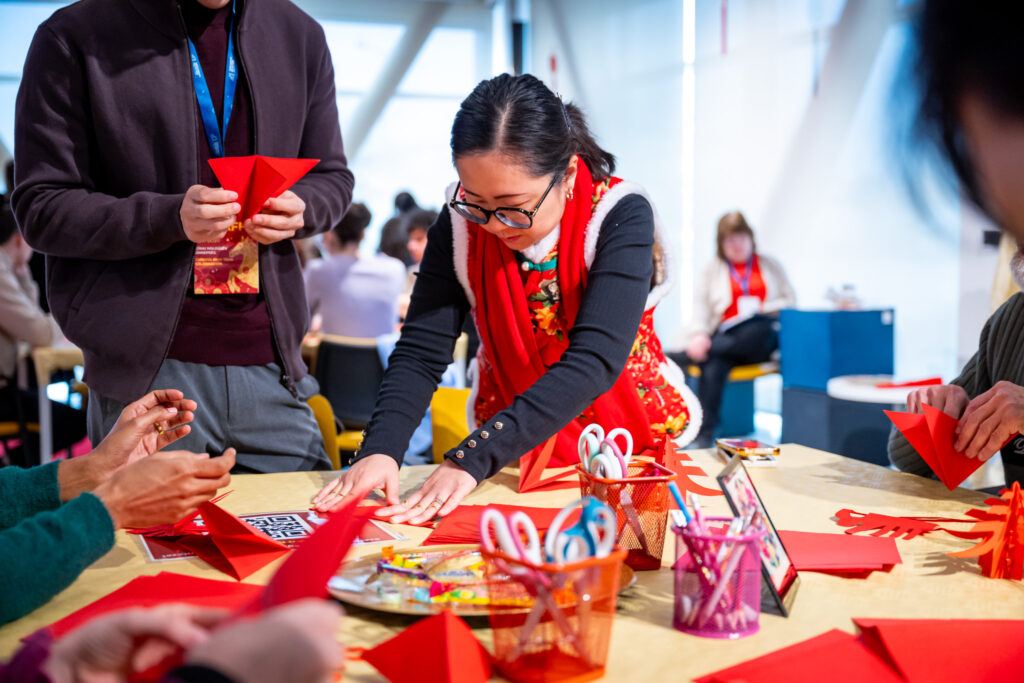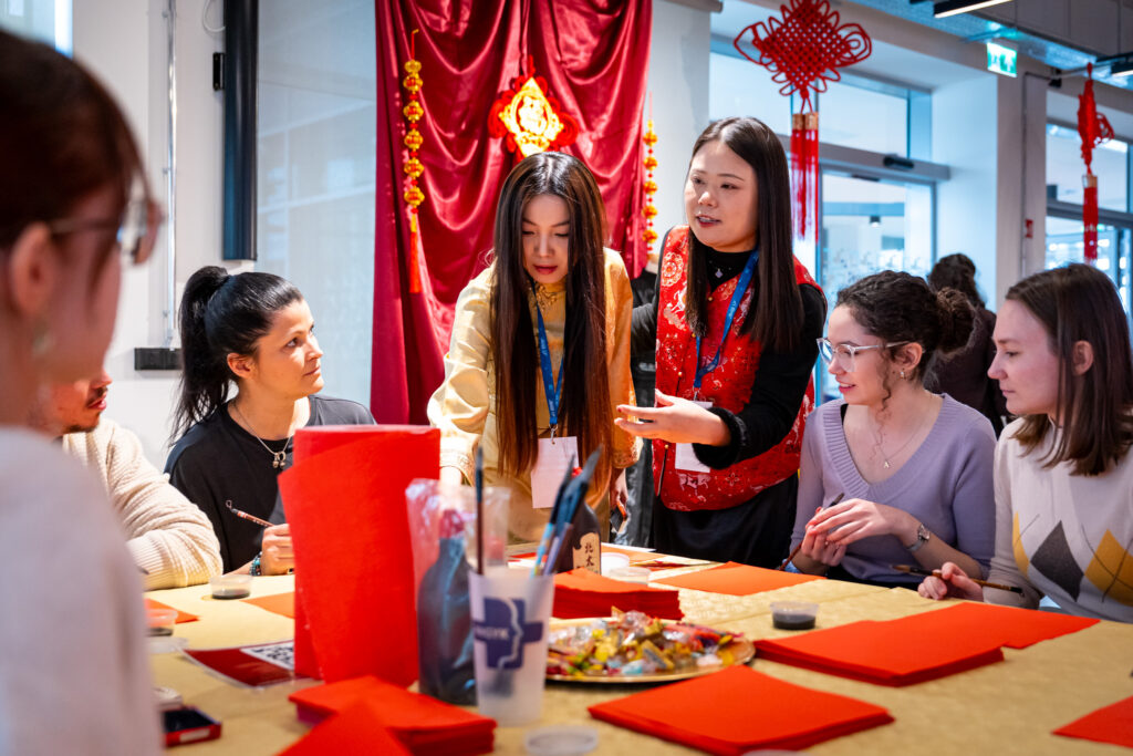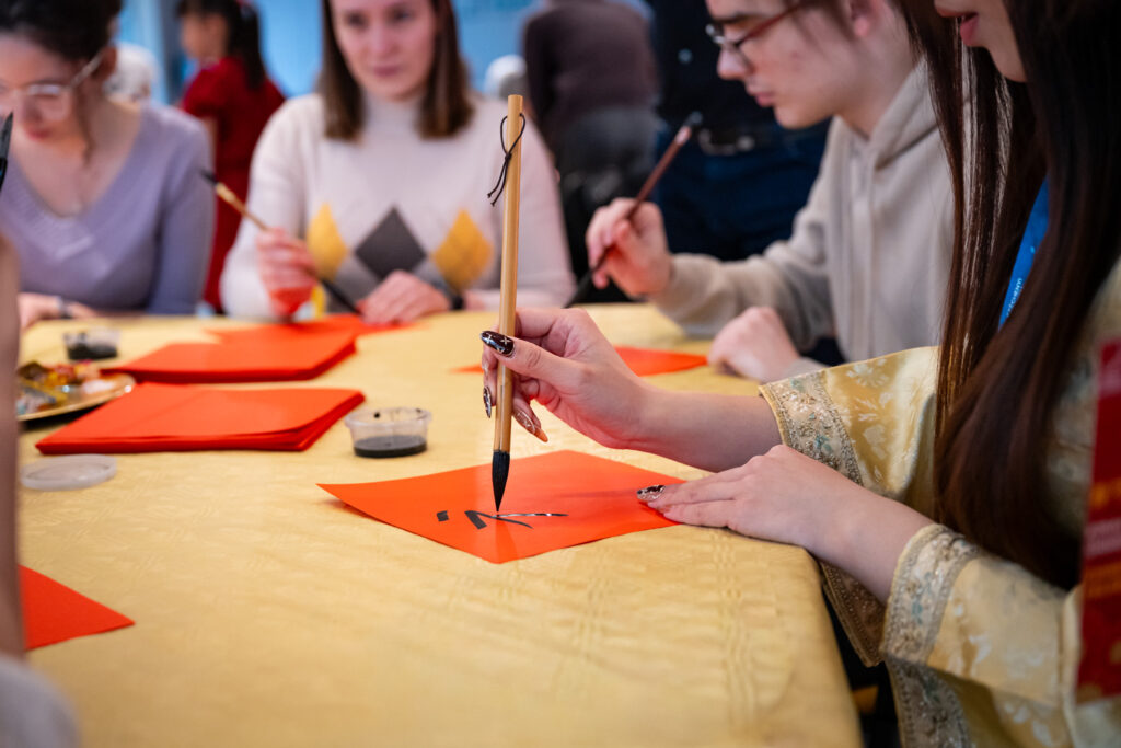 The festive programme opened with a joint performance by the Chinese students and lecturers of Széchenyi István University, followed by a range of colourful interactive activities. In addition to table tennis, participants could try jianzi, the traditional shuttlecock game played with the feet, take part in chopstick challenges, and learn taiji quan and qigong movement exercises. At the thematically decorated venue, visitors could take photographs with mannequins dressed in authentic folk costumes, create bookmarks, and try their hand at traditional calligraphy and stencil painting.