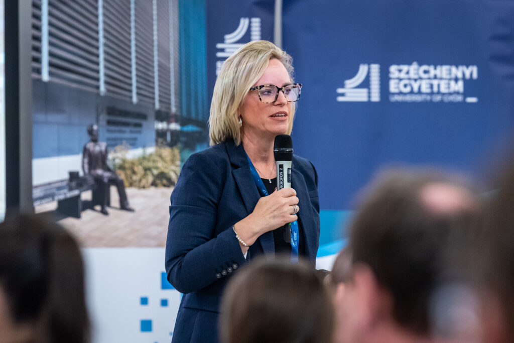 Dr. Lukács Eszter, az intézmény nemzetközi és stratégiai kapcsolatokért felelős elnökhelyettese nyitóbeszédében hangsúlyozta, hogy az ilyen tudományos rendezvények nemcsak a szakmai párbeszédet erősítik, hanem az intézmény nemzetközi kapcsolatrendszerének bővítését is szolgálják.