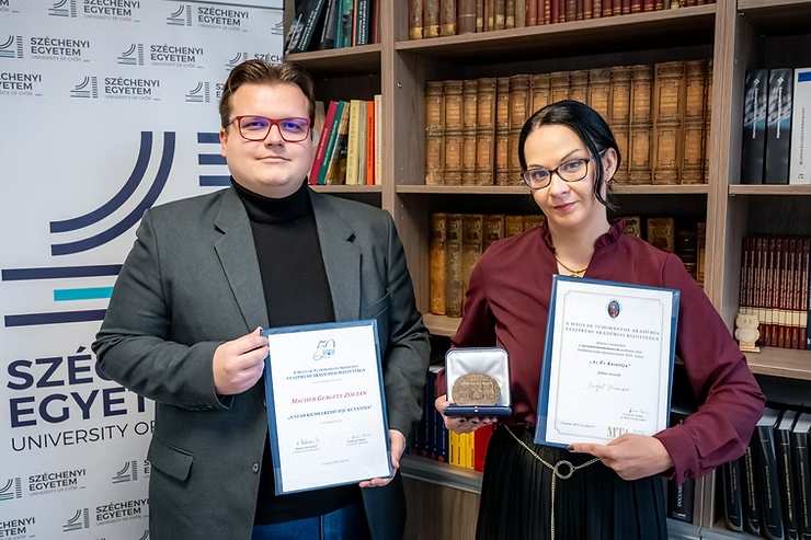 A Magyar Tudományos Akadémia (MTA) Veszprémi Területi Bizottsága nemrég a Széchenyi István Egyetem két oktatóját is elismerésben részesítette: dr. Nogel Mónika, az Állam- és Jogtudományi Doktori Iskola tudományos igazgatója az Év Kutatója 2025 díjban részesült, Macher Gergely Zoltán, az Alkalmazott Fenntarthatóság Tanszék egyetemi tanársegédje pedig Kiemelkedő Ifjú Kutató 2025 kitüntetést vehetett át.