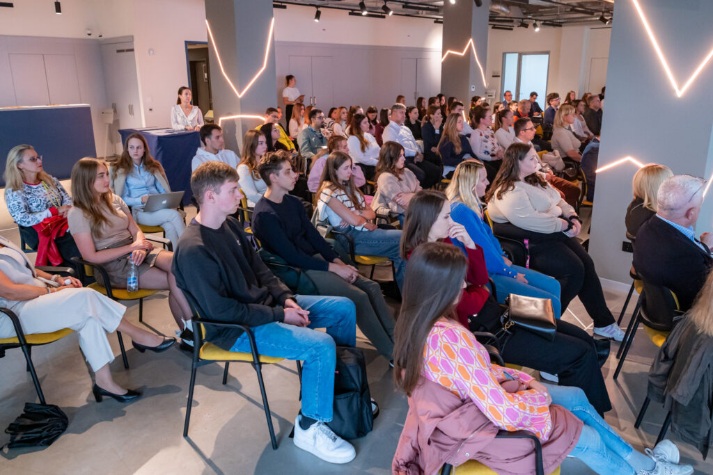 Az előadást jelentős érdeklődés övezte, a hallgatóság megtöltötte a Győri Innovációs Park auláját.