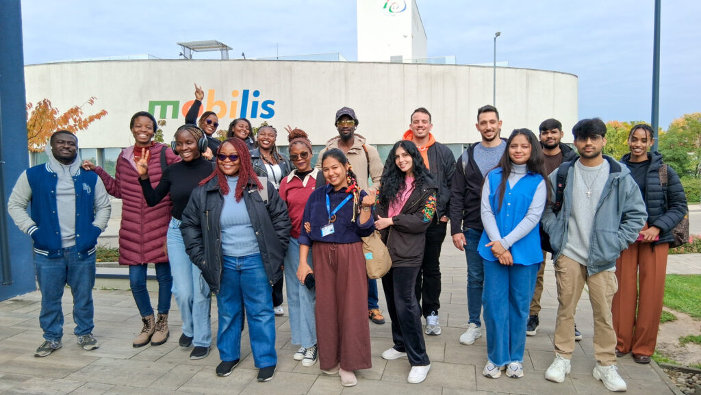 A Széchenyi István Egyetemen tanuló keresztény nemzetközi hallgatók a Pannonhalmi Főapátságba is ellátogattak közösen. A felvételen az indulás pillanata az egyetem győri campusán.