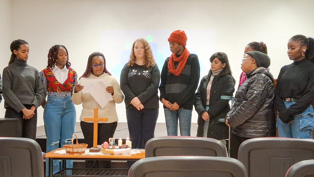 A Széchenyi István Egyetem keresztény nemzetközi hallgatói összetartó közösséget alkotnak. Képünkön a fiatalok az adventi koszorú második gyertyáját gyújtják meg ünnepélyes keretek között.